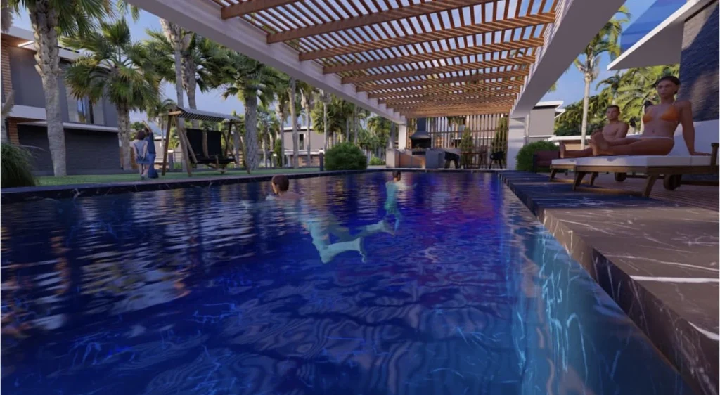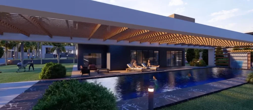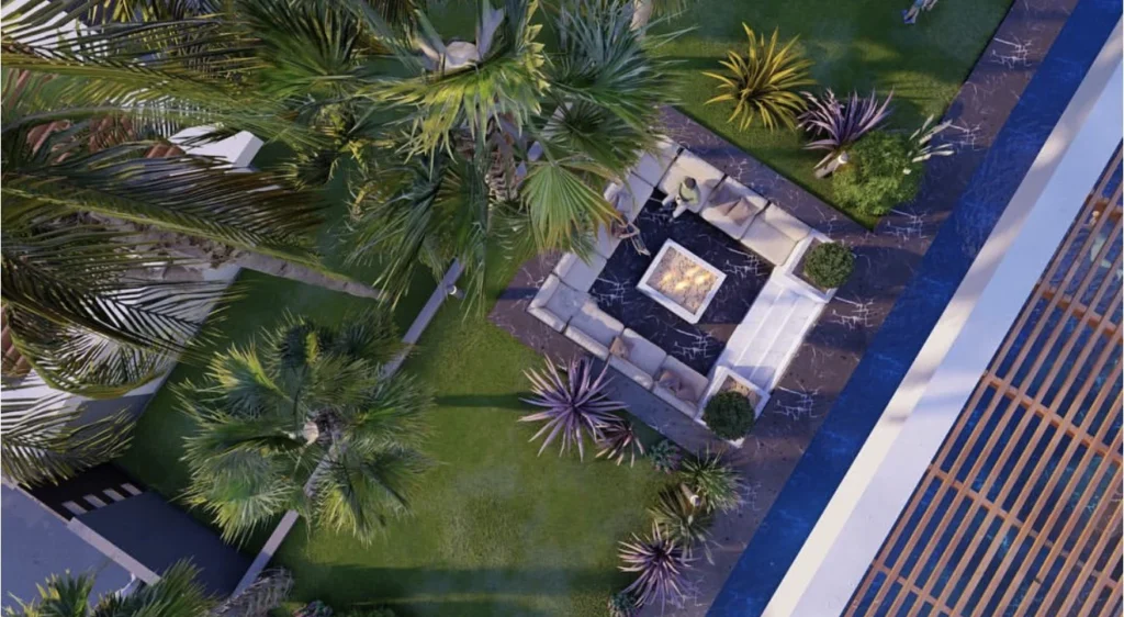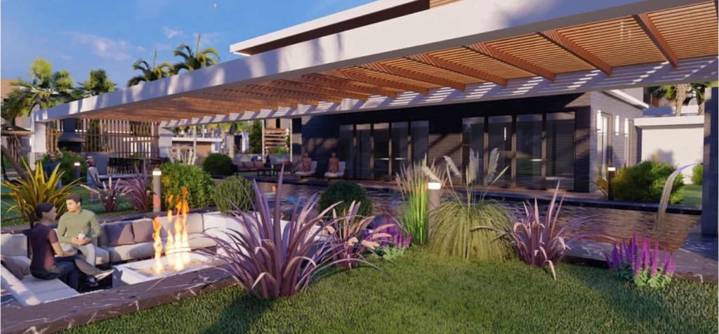 Villaların sosyal yaşam alanlarında; özel yüzme havuzları, ateş çukuru etrafında kurgulanan oturma alanları ve yarı açık pergola sistemleriyle desteklenen teraslar yer alıyor. Bu alanlar, günün farklı saatlerinde hem dinlenme hem de sosyalleşme ihtiyacına cevap verecek şekilde tasarlandı.